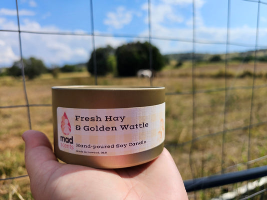 Fresh Hay & Golden Wattle - Large Tin Candle